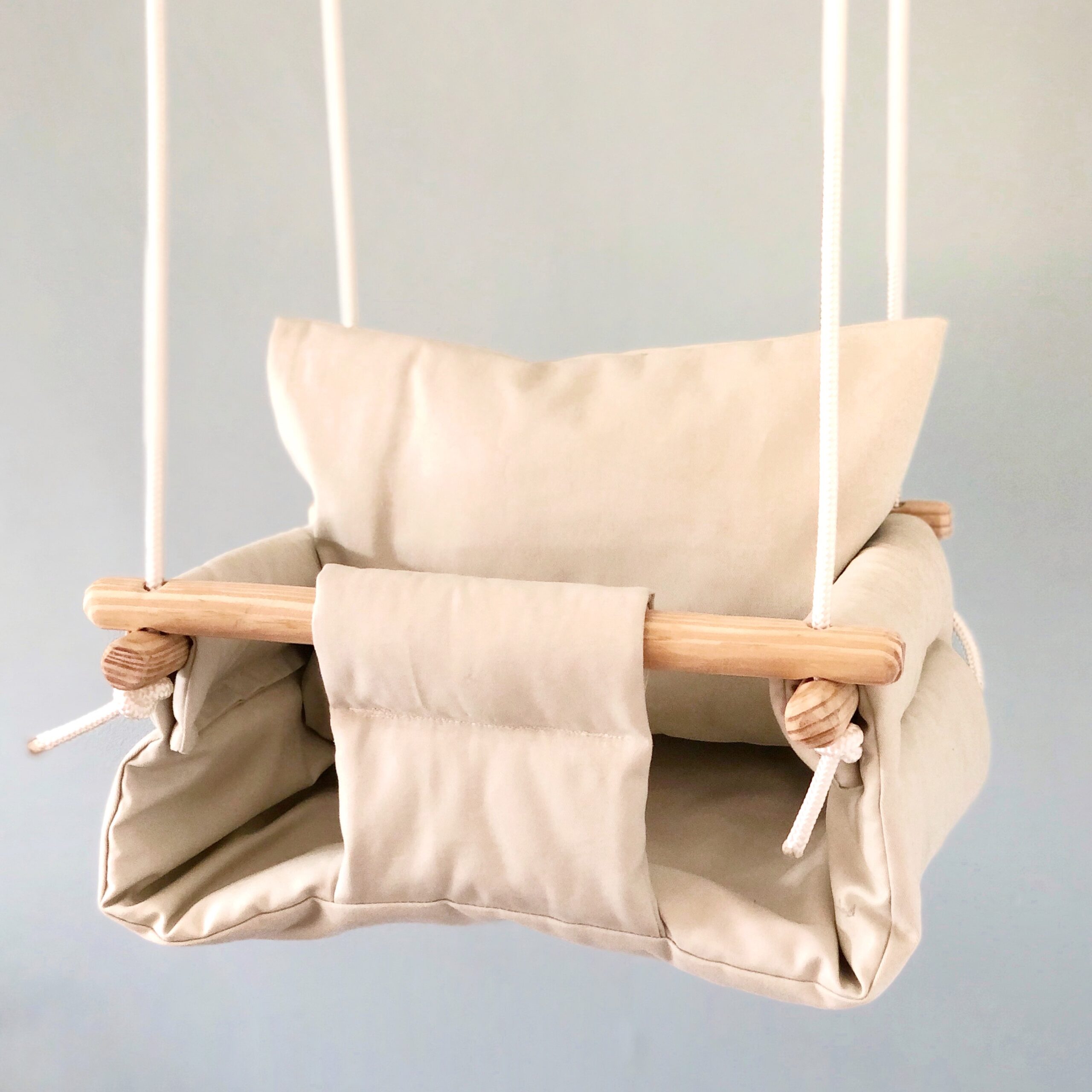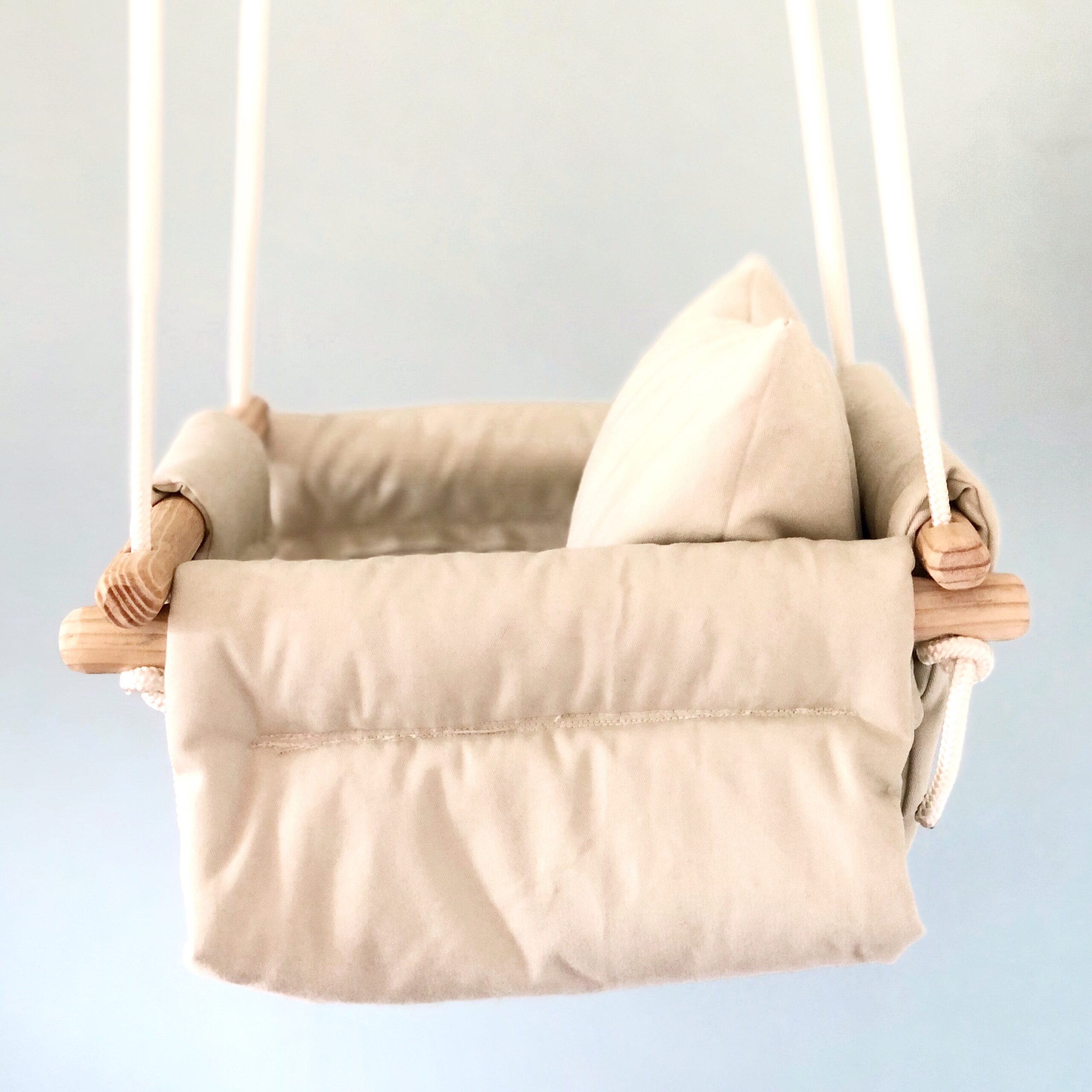 Extra Support – Our swings are designed with double fabric and batting in between turning the swing itself into a lovely soft padded cushion. Each swing also comes with it’s own small cushion for added support which is great for babies under the age of one.